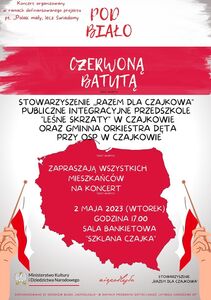 Emocje opadły, więc czas na małe podsumowanie naszego koncertu. 02.05.2023r. w Dzień Flagi, Publiczne Integracyjne Przedszkole „Leśne Skrzaty” w Czajkowie wraz z Gminną Orkiestrą Dętą przy OSP w Czajkowie zorganizowało koncert patriotyczny pt. „Pod biało – czerwoną...