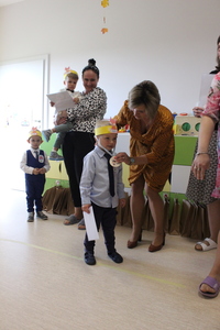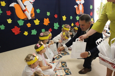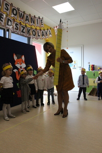 Wychowawczyni - Pani Bożena Sip - będzie miała przyjemność prowadzić naszą najmłodszą grupę poprzez meandry wiedzy i zabawy. Pomagała jej będzie Pani Elżbieta Kosmala. Panie doskonale przygotowały Liski do pasowania, co mogli podziwiać Rodzice oraz zaproszeni goście: Wójt Gminy Czajków Pan Henryk Plichta, Skarbnik Gminy Czajków Pani Karolina Wolska, Dyrektor Rejonowego Banku Spółdzielczego w Czajkowie Pan Mateusz Kapica oraz Przedstawiciel Komisji Alkoholowej Pani Lidia Stolecka. Gościom, Rodzicom oraz starszym i młodszym kolegom dziękujemy za prezenty.