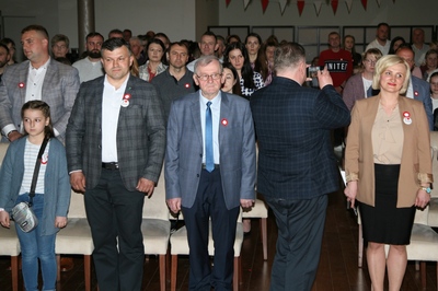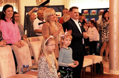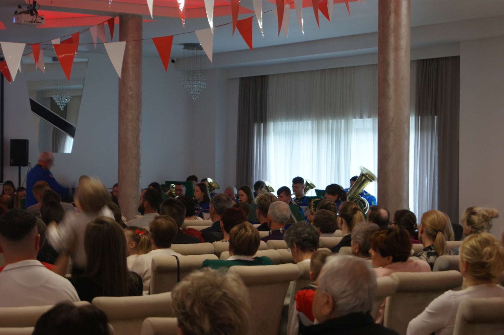 Emocje opadły, więc czas na małe podsumowanie naszego koncertu. 02.05.2023r. w Dzień Flagi, Publiczne Integracyjne Przedszkole „Leśne Skrzaty” w Czajkowie wraz z Gminną Orkiestrą Dętą przy OSP w Czajkowie zorganizowało koncert patriotyczny pt. „Pod biało – czerwoną batutą”. Na koncercie mogliśmy gościć rodzinę naszych przedszkolaków, sympatyków orkiestry oraz przedstawicieli lokalnych władz i organizacji pozarządowych. Swoją obecnością zaszczyciła nas również Posłanka na Sejm RP Katarzyna Sójka oraz Anna Lis, reprezentująca posłankę do UE Andżelikę Możdżanowską, które obdarowały nas okolicznościowymi upominkami. Koncert rozpoczął się uroczystym odśpiewaniem hymnu, który odegrała Gminna Orkiestra Dęta. Następnie pałeczkę przejęły Leśne Skrzaty, które poprzez wiersze i piosenki opowiedziały historię polskich symboli narodowych. Dla urozmaicenia widowiska dziewczynki z grupy Sarenek i Niedźwiadków, w pięknych ludowych strojach, zatańczyły układ do piosenki „W moim ogródecku”. Na tym jednak nie zakończyły się taneczne występy przedszkolaków. Na zakończenie oficjalnej części wszystkie Leśne Skrzaty zaprosiły publiczność do zabawy i wspólnymi siłami odtańczony został taniec małego Polaka. Gdy wszyscy myśleli, że koncert dobiegł końca, Niedźwiadki pełne entuzjazmu wyruszyły autostopem w podróż po Polsce. Dzięki nim goście mogli cofnąć się w czasie i na własne oczy zobaczyć losy Szewczyka Dratewki oraz Warszawskiej Syrenki. Podczas koncertu orkiestra wprowadzała publiczność w nastrój zadumy i powagi grając takie utwory jak: Ojczyzno ma, Marsz Polonia, Wiązanka Pieśni Żołnierskich, Mazurek 3 Maja, Wierzby płaczące. Przedszkolaki natomiast swoim wdziękiem sprawiały, że na sali pojawiało się morze uśmiechów i westchnień zachwytu. Zarówno jedni jak i drudzy otrzymali od zebranych gości gromkie brawa. Po uroczystości dzieci rozdawały wszystkim biało–czerwone kwiatki i zapraszały na pyszną kawę i ciasto, przygotowane przez rodziców orkiestrantów i Leśnych Skrzatów. Bardzo dziękujemy za Waszą obecność! Było nam niezmiernie miło gościć wszystkich przybyłych. Jesteśmy Wam naprawdę bardzo wdzięczni, że zechcieliście spędzić z nami to majowe popołudnie! Z tego miejsca chcemy podziękować wszystkim życzliwym osobom, które pomogły nam w organizacji tego projektu: Wójtowi Gminy Czajków Henrykowi Plichcie wraz z pracownikami Urzędu Gminy, Danucie Przybyłek i Stowarzyszeniu „Razem dla Czajkowa”, Sali bankietowej „Szklana Czajka” z właścicielem Adamem Adamusem, usługom transportowym „TRANSMAR” z właścicielem Mariuszem Wrzoskiem, Mateuszowi Wrzoskowi odpowiedzialnemu za obsługę techniczną naszego koncertu, rodzicom przedszkolaków i orkiestrantów oraz wszystkim, którzy trzymali za nas kciuki i wspierali dobrym słowem. Napawa nas duma i radość, że w każdej sytuacji możemy liczyć na pomoc tak dobrych ludzi.