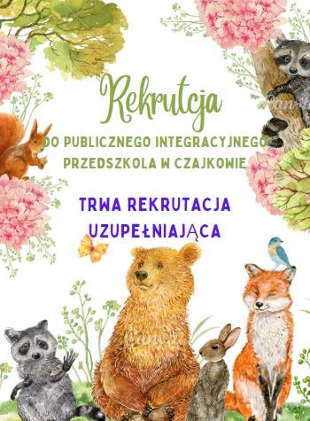 Zgodnie z harmonogramem rekrutacji do Publicznego Integracyjnego Przedszkola "Leśne Skrzaty" w Czajkowie trwa rekrutacja uzupełniajaca.