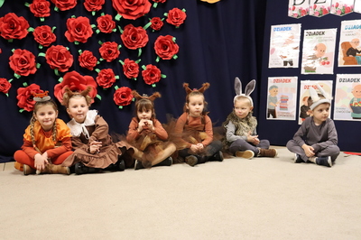 19 stycznia dzieci z grupy „Lisków” zaprosiły swoje Babcie i swoich Dziadków aby móc razem świętować. W pięknej scenografii oraz wyjątkowej atmosferze dzieci zaprezentowały przedstawienie pt. ”Zdrowe niespodzianki z lasu i polanki”. Przedszkolacy obdarowali swoich bliskich życzeniami, laurkami, poczęstunkiem i gorącymi pocałunkami wyrażając w ten sposób wdzięczność i szacunek. Była to wyjątkowa uroczystość, pełna uśmiechu i radości. Przedłużając świętowanie Dnia Babci i Dziadka, 23 stycznia przedszkolacy udali się do zaprzyjaźnionego Klubu Seniora w Mielcuchach aby przedstawić uczęszczającym tam Seniorom przygotowane przedstawienie. Był wspólny poczęstunek, zabawy, uśmiechy oraz niezapomniane rozmowy. Szczęśliwe i rozpromienione twarze Babć i Dziadków oraz Seniorów dały wyraz tego, jak ważne są takie spotkania i wspólnie spędzone chwile.