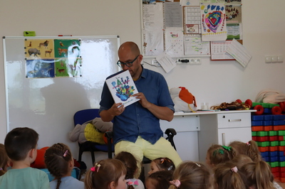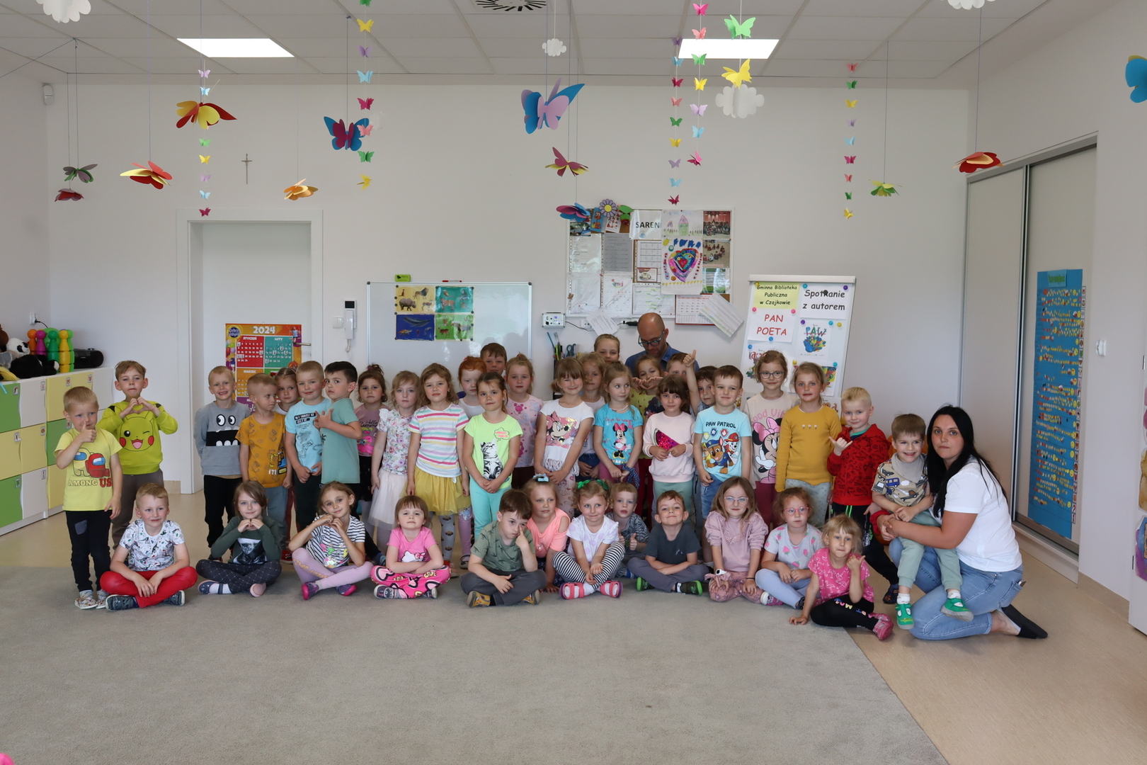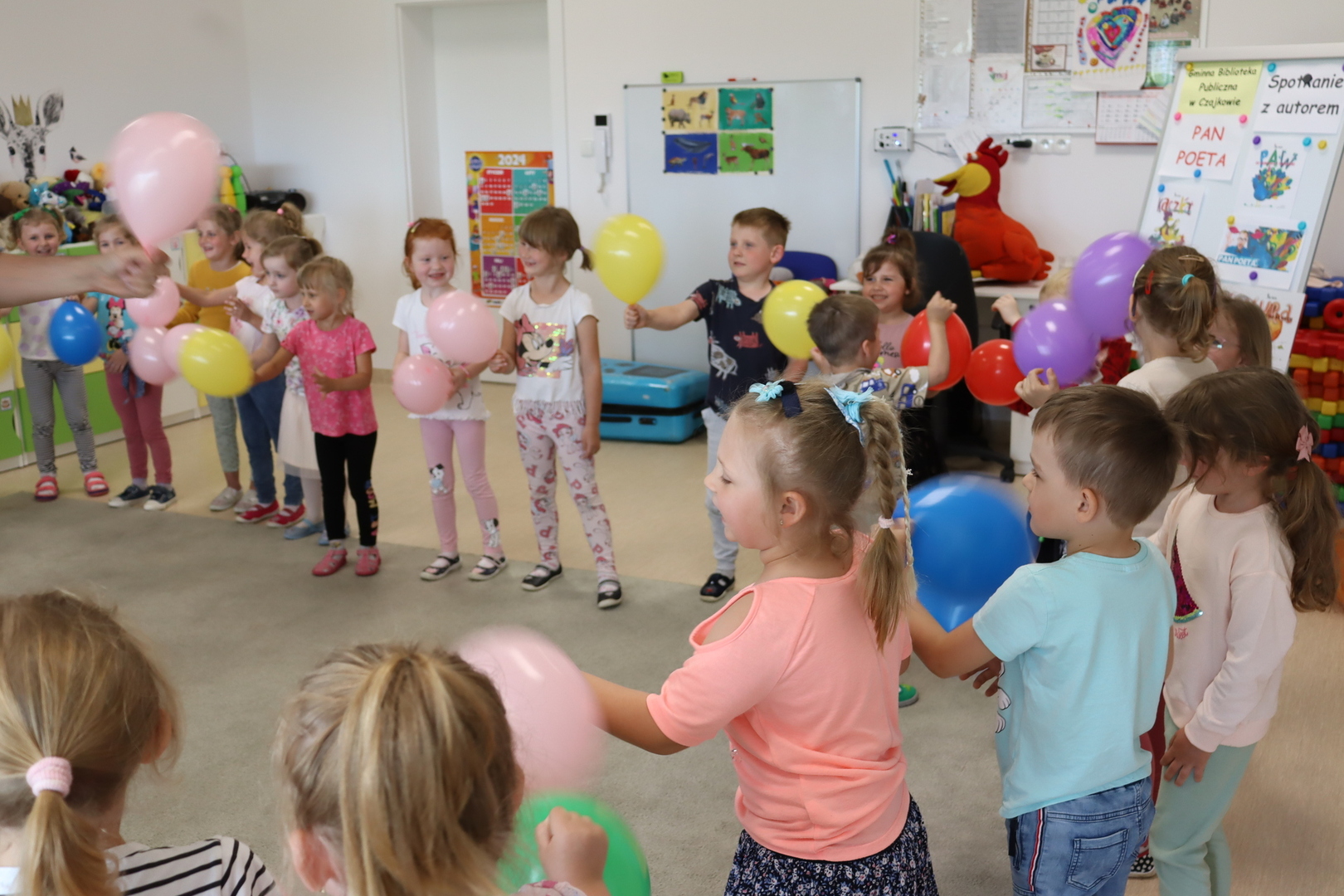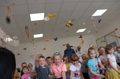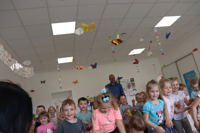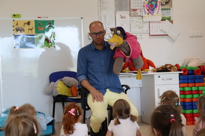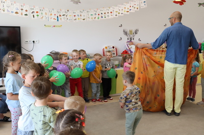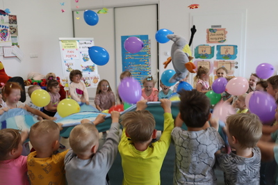 Nasze przedszkole odwiedził Pan Poeta, autor bajek dla dzieci z morałem. Pan Poeta zadebiutował książką „Kura, co tyła na diecie”. Przedszkolaki miały przyjemność przenieść się w zaczarowany świat wspaniałych ptaków i ich zwariowanych przygód. Podróż ta była niezwykła... Towarzyszyły jej wspaniale zabawy i rozmowy. Pan Poeta Show to warsztaty dla dzieci z Panem Poetą, które angażują, bawią i zachęcają do czytania najmłodszych. Krótkie bajki do czytania autorstwa pana Michała są pretekstem do wciągnięcia dzieci w wir zabaw, przebieranek, kolorowych balonów i niezliczonych uśmiechów.