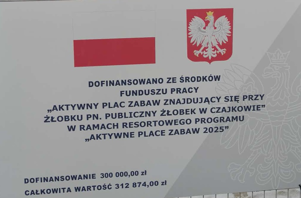 Całkowity koszt realizacji zadania wyniósł 312 874 zł z czego kwota 300 000 zł stanowiła dofinansowanie ze środków Funduszu Pracy w ramach resortowego programu „Aktywne Place Zabaw 2025”. Zrealizowane zadanie przyczyniło się do podniesienia standardu infrastruktury opieki nad dziećmi do lat 3 na terenie Gminy Czajków.
